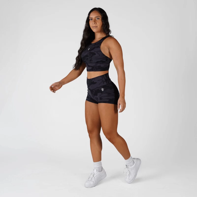 The Camo Revive mid-rise workout shorts are created with high-performance Nylon/Spandex material for flawless breathability and compression.Â
